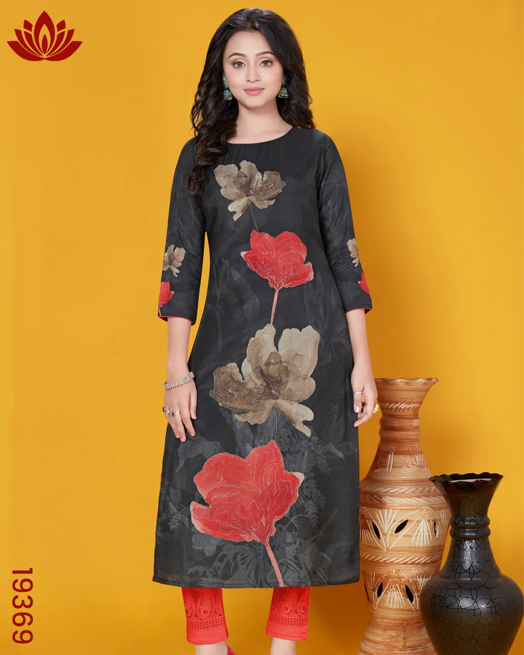 Made from pure muslin cotton? soft, breathable, and comfortable Elegant digital print for a stylish and trendy look Beautiful golden thread outline work for a refined touch Straight-cut design for a flattering and graceful silhouette Perfect for office wear, casual outings, and festive gatherings