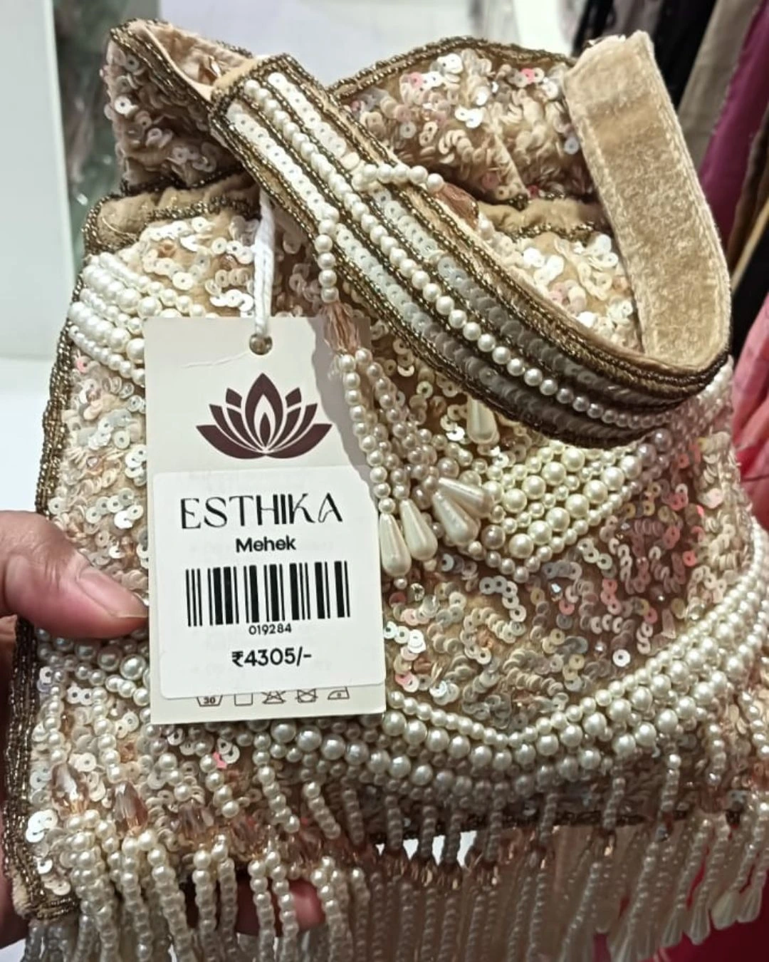 Enhance your festive and bridal look with this exquisite designer potli, adorned with intricate moti (pearl) and sequin work all over. Crafted with precision, this elegant potli is the perfect accessory for weddings, festive occasions, and bridal ensembles. Its luxurious detailing adds a regal charm, making it a must-have statement piece.