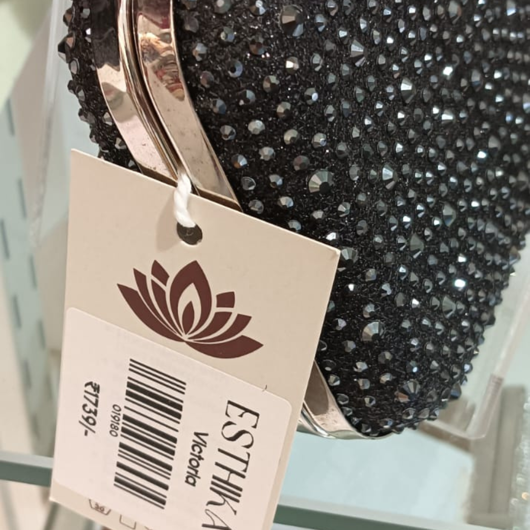 Elevate your style with this black embellished clutch, designed for formal occasions and casual elegance. Its compact size makes it a perfect accessory for weddings, parties, and evening outings, effortlessly complementing any outfit.